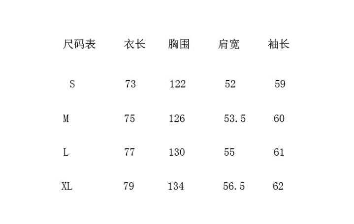 (사이즈 / 총기장 / 가슴둘레 / 어깨넓이 / 소매기장) 순서입니다.