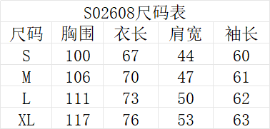 (사이즈 / 가슴둘레 / 총기장 / 어깨넓이 / 소매기장) 순서입니다.